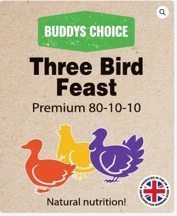 Buddy’s Choice Three Bird Feast is a premium, complementary raw food specially formulated for working dogs. Part of our new 80/10/10 range, available exclusively to trade customers, it is made from a nutritious blend of 30% chicken, 25% duck, and 25% turkey, along with 10% bone and 10% poultry offal. Minced using 8mm plates, this balanced feed supports muscle growth, joint health, and overall vitality. Packed with high-quality protein and essential nutrients, it provides an ideal natural diet. With no artificial additives, preservatives, or fillers, this raw food is perfect for those needing a clean and wholesome diet.