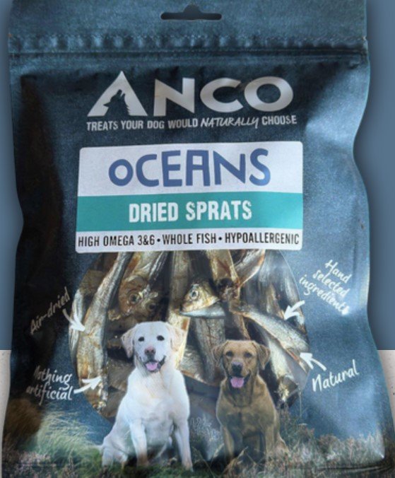 Anco Dried Sprats are really beneficial to your dog. These sprats are hypoallergenic meaning they are suitable to those with sensitive tummies. Naturally rich in Omega oils which are ideal for promoting healthy skin and coat, assists eye and brain development – helps increase intelligence and training ability – and even chewing down on the treat helps to remove tartar from their teeth! These treats have a natural enticing smell your dog will of course love, and they can feel good eating them. Highly digestible, reduces the work needed by your dog’s digestive system, ideal for those with sensitivities.