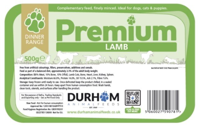 COMPOSITION: Lamb Cuts, Bone, Heart, Liver, Spleen. ANALYTICAL CONSTITUENTS: Moisture 68%, protein 15%, oil 14%, Ash 3%